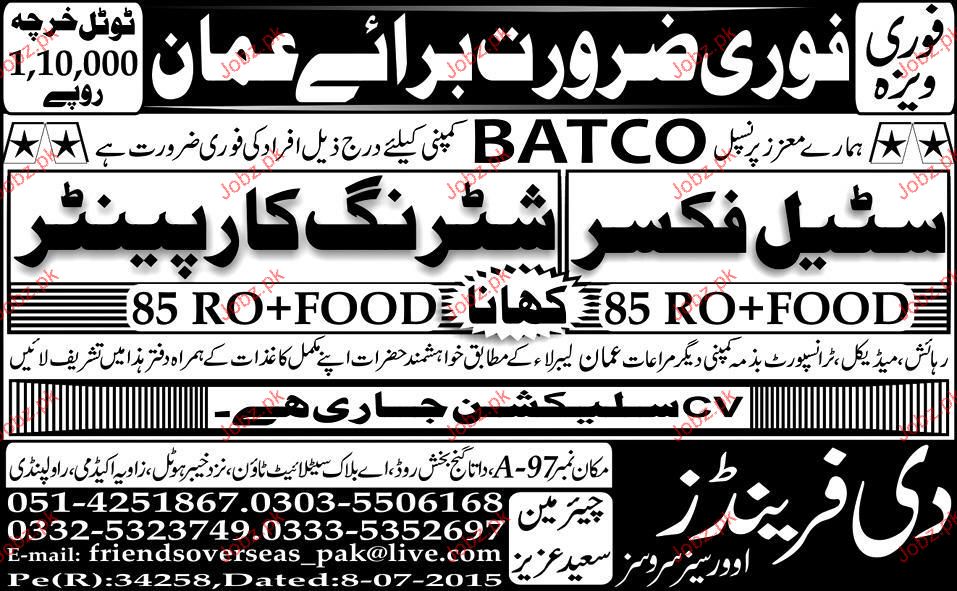 Shuttering Carpenters and Steel Fixers are required in Oman.
