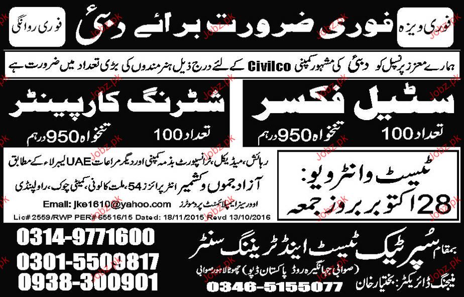 Shuttering Carpenters And Steel Fixers Job Opportunity