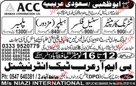 Shuttering Carpenters and Steel Fixers are required in Saudi Arabai.