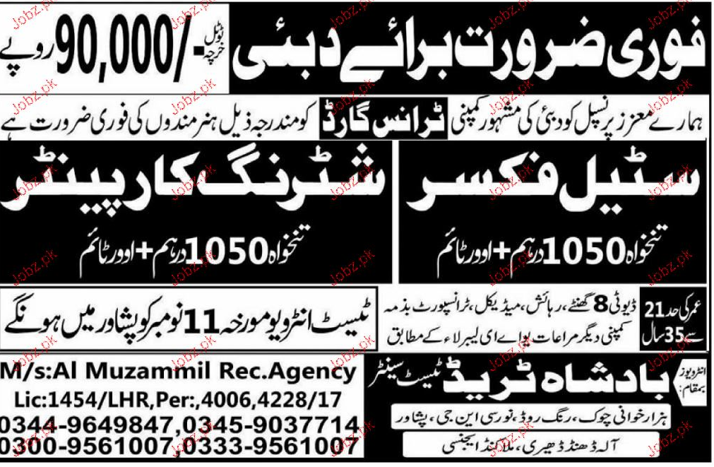 Latest Badshah Trade Test Center Construction Posts Dubai 2025