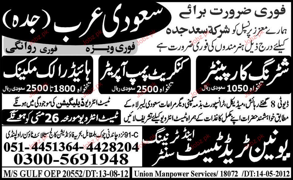 Shuttering Carpenters, Concrete Pump Operator Wanted