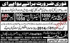 Shuttering Carpenters, Electricians And Labors Wanted