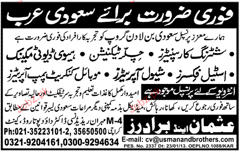 Shuttering Carpenters, Heavy Duty Mechanics Wanted