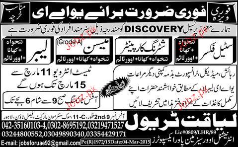 Shuttering Carpenters, Labors, Mason Job Opportunity