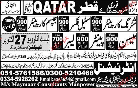 Shuttering Carpenters, Mason, Painters, Labors Wanted