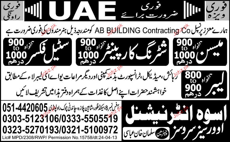 Shuttering Carpenters, Mason, Steel Fixers Job Opportunity