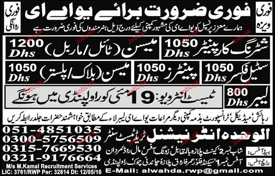 Shuttering Carpenters, Mason, Steel Fixers, Painters Wanted