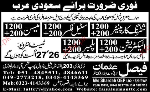 Shuttering Carpenters, Plumbers, Mason Job Opportunity