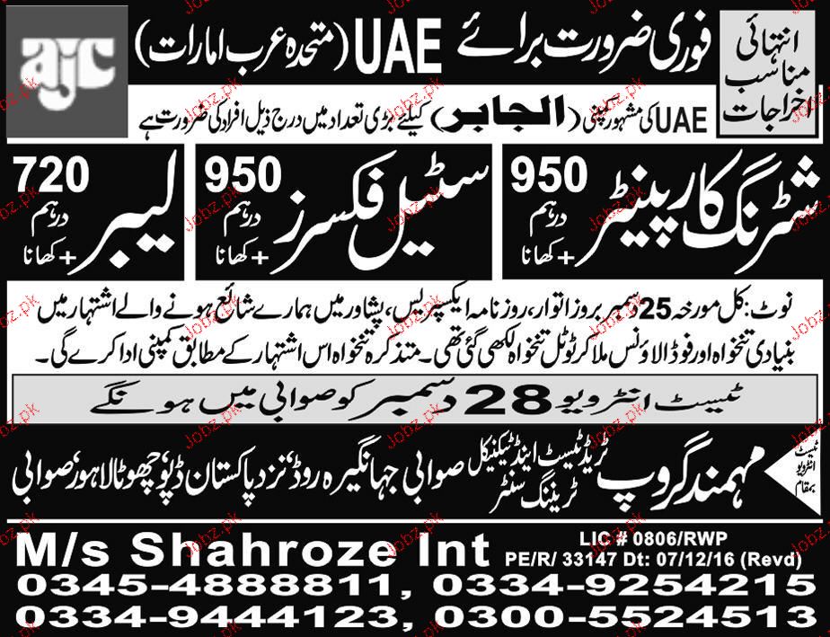 Shuttering Carpenters, Steel Fixers and Labors are required in UAE.