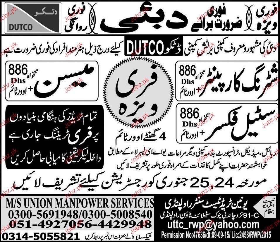 Shuttering Carpenters, Steel Fixers and Mason are required in Dubai.