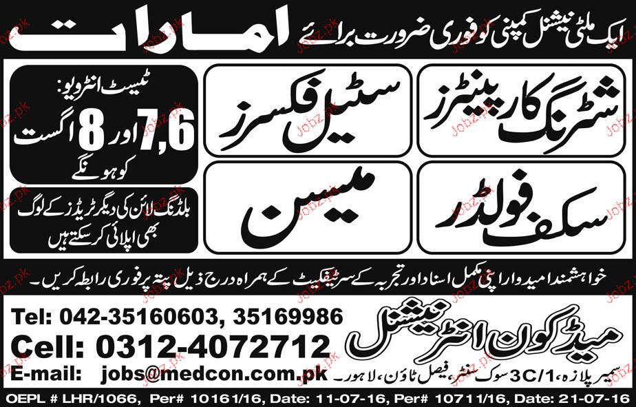 Apply as per details in job advertisement. Login to view further details of how to apply via https://www.jobz.pk online.