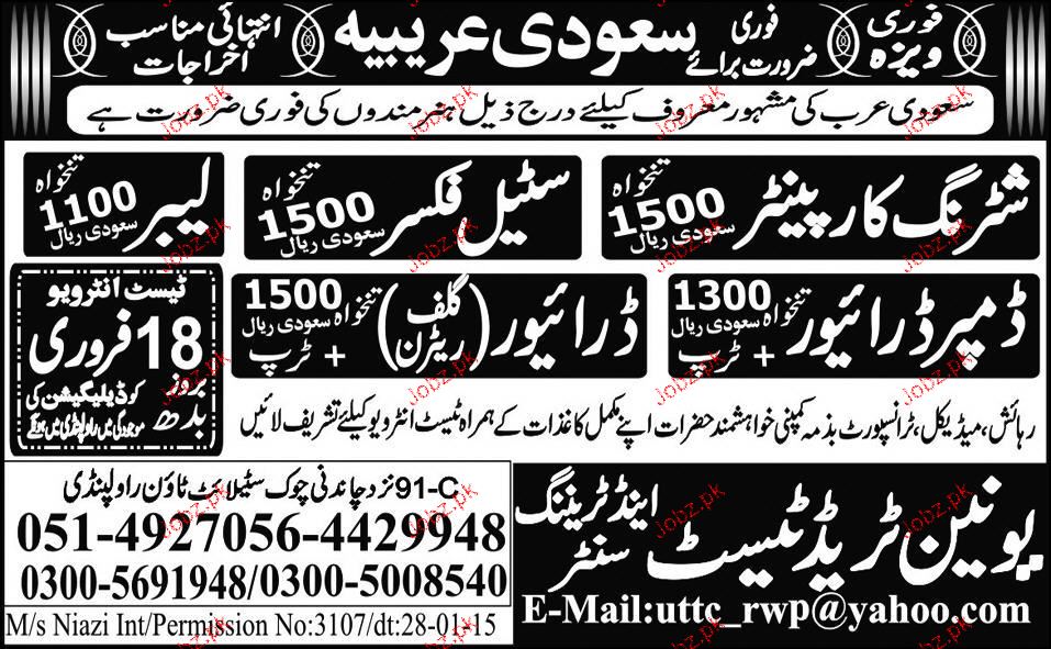 Shuttering Carpenters, Steel Fixers, Dumper Drivers and Drivers are required in Saudi Arabia.