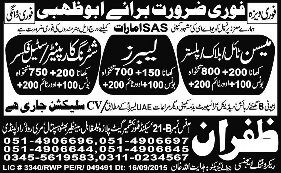 Shuttering Carpenters, Steel Fixers, Mason and Labors are required in Abu Dhabi.