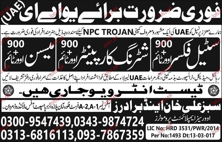 Shuttering Carpenters, Steel Fixers and Mason are required in UAE.