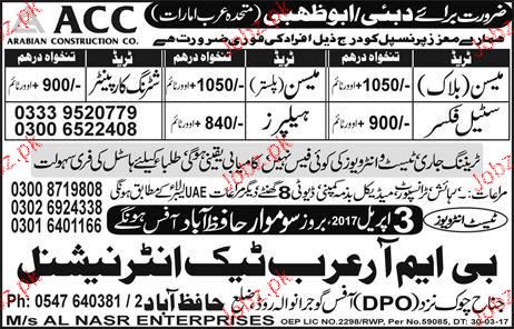 Shuttering Carpenters, Steel Fixers and Helpers are required in Dubai.