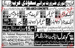 Shuttering Carpenters, Steel Fixers, Group Leaders Shuttering Carpenters, Steel Fixers Group Leaders, Plaster Mason and Concrete Mason are required in Saudi Arabia.