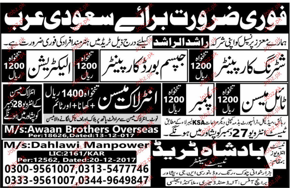 Latest Badshah Trade Test Center Construction Posts Saudi Arabia 2025