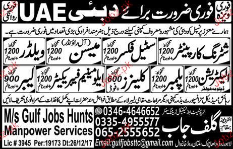 Latest Gulf Job Hunts Manpower Services Construction Posts Dubai 2025