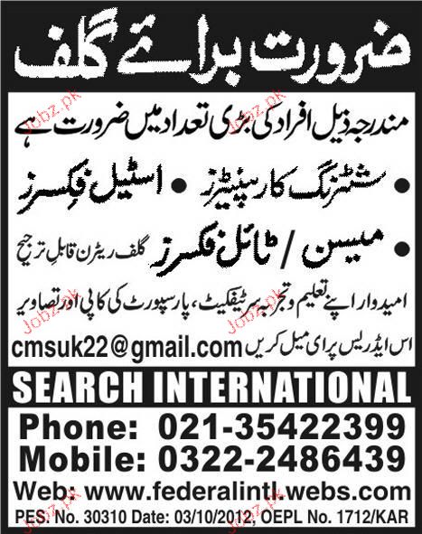 Shuttering Carpenters, Steel Fixers, Mason and Tile Fixers are required in UAE