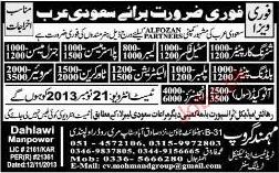 Shuttering Carpenters, Steel Fixers, Building Painters Plumbers, Electricians and Surveyors are required in Saudi Arabia