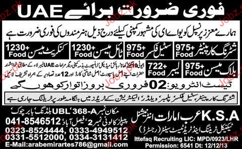 Shuttering Carpenters, Steel Fixers, Concrete Mason, Block Mason and Labors are required in UAE