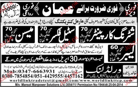 Shuttering Carpenters, Steel Fixers Job Opportunity