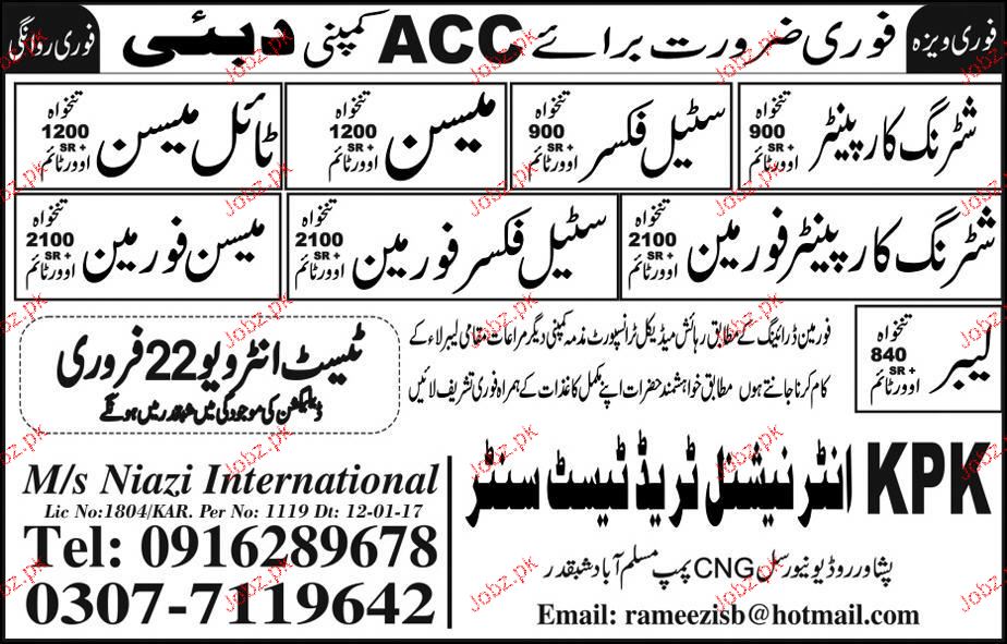 Shuttering Carpenters, Steel Fixers, Mason Job Opportunity