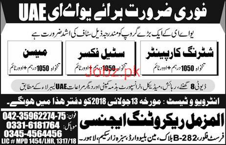 Latest Al Muzammil Recruitment Agency Construction Posts UAE 2025