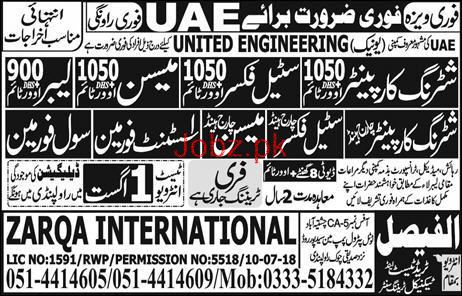 Latest Al Faisal Trade Test & Technical Training Center Construction Posts UAE 2025