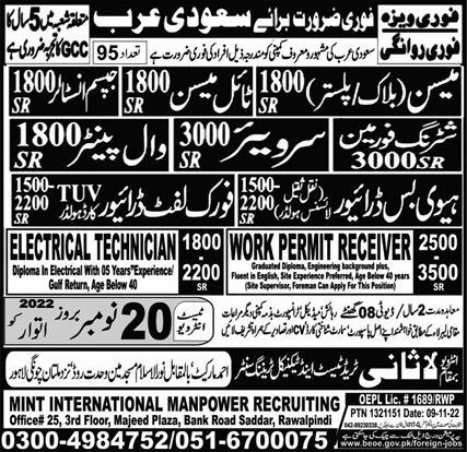Lasani Trade Test & Technical Training Center is looking for candidates for following posts as per job advertisement published in daily Express Newspaper of November 19, 2022 for location Riyadh, jeddah Saudi Arabia: