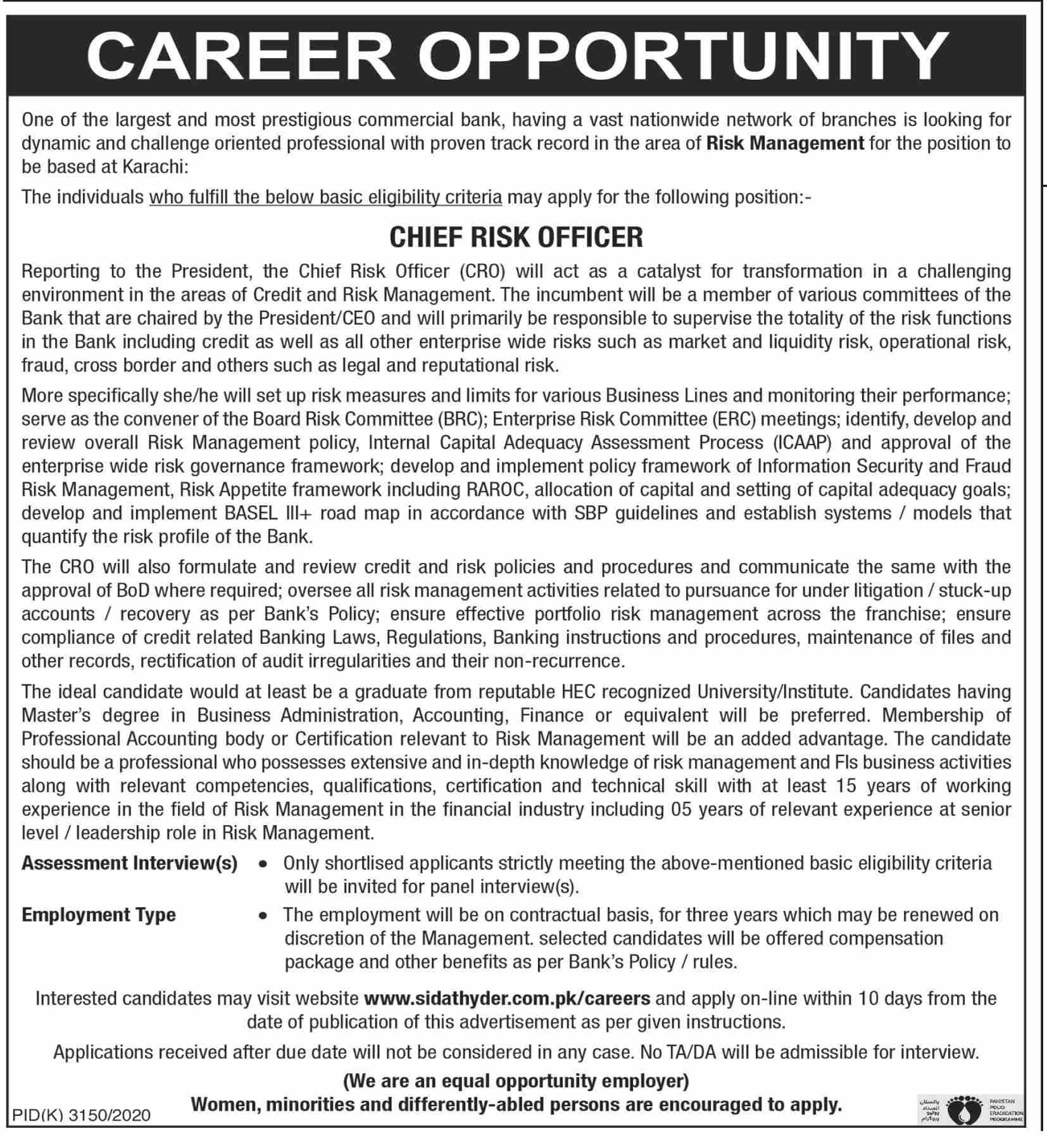 Apply as per details in job advertisement. Login to view further details of how to apply via https://www.jobz.pk online.
