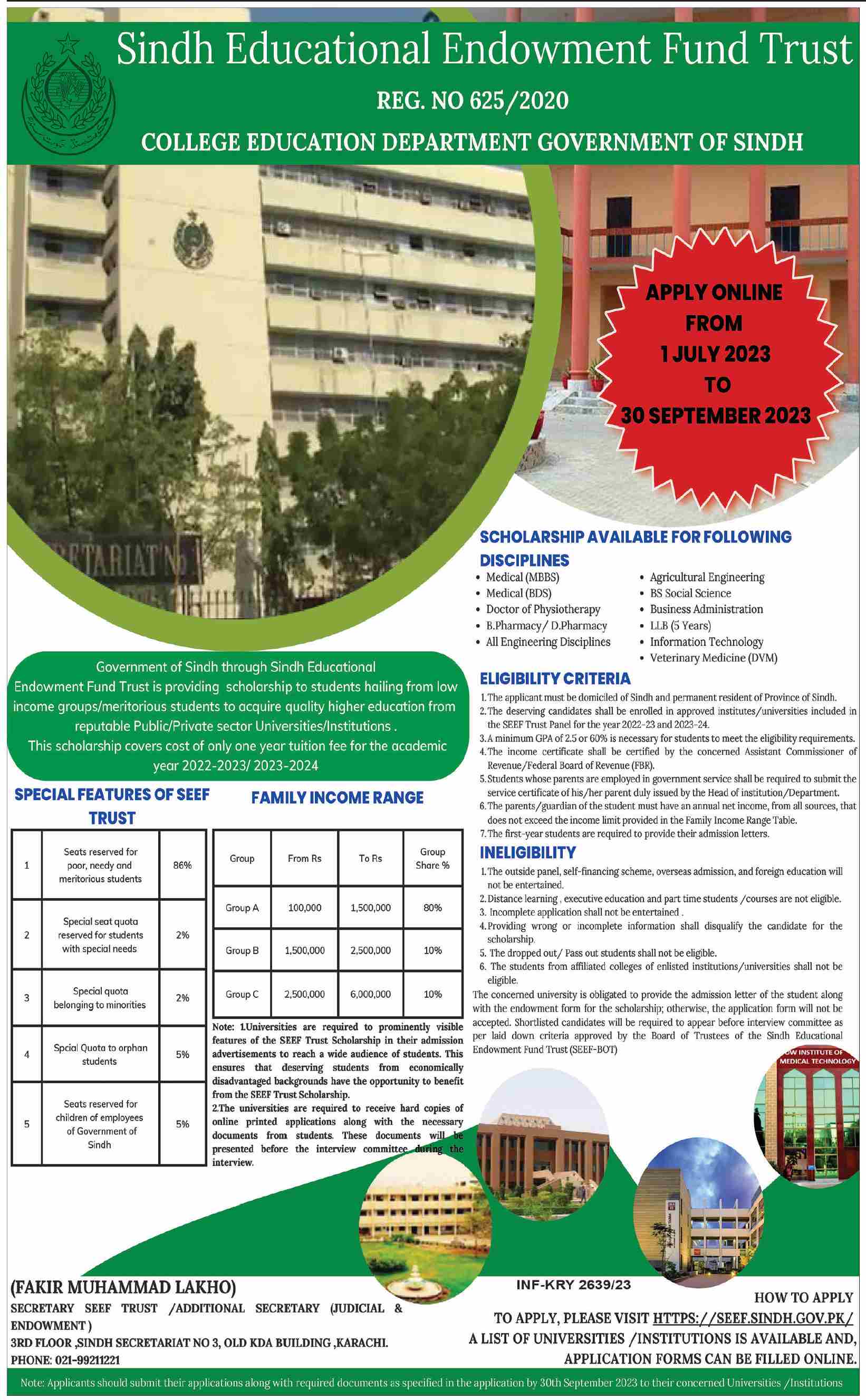 Sindh Educational Endowment Fund Trust Scholarship 2023