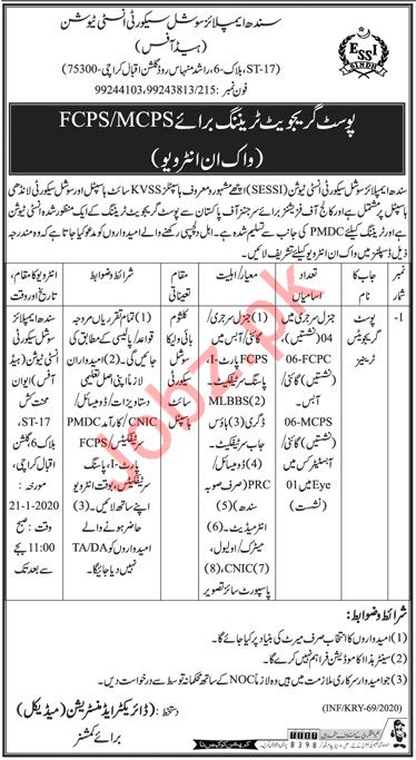 Vacancies in Sindh Employees Social Security Institution SESSI Advertisement January 2020