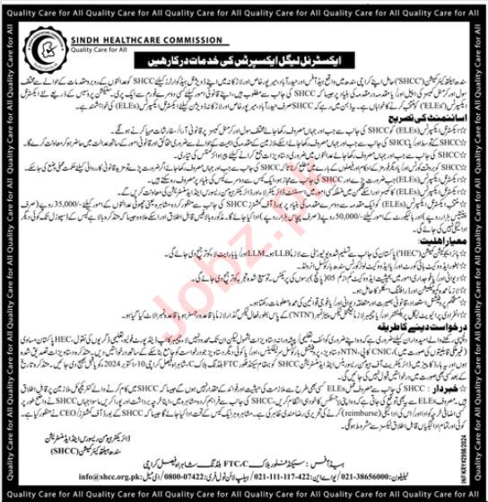 Sindh Healthcare Commission External Legal Expert Jobs 2024