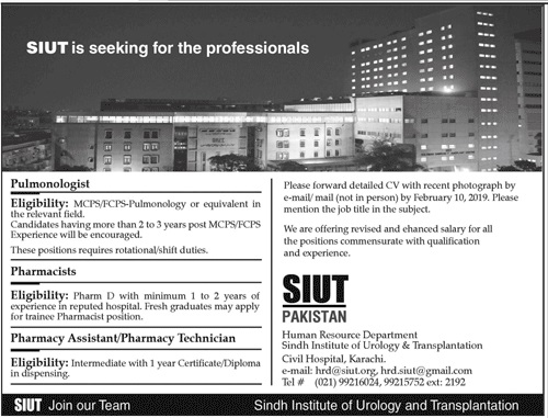 Vacancies in Sindh Institute of Urology and Transplantation SIUT Advertisement February 2019