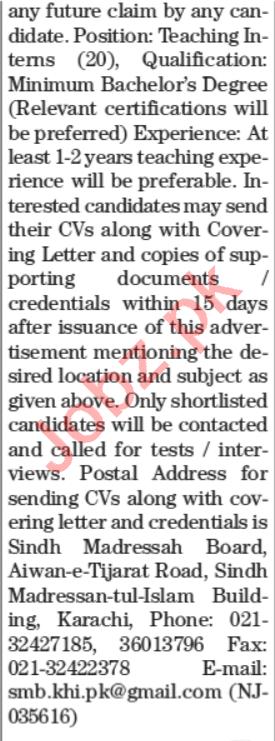 Vacancies in Sindh Madressah Board Advertisement April 2021