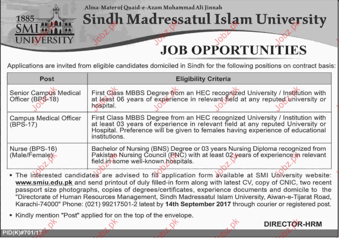 Sindh Madressatul Islam University Jobs Opportunity