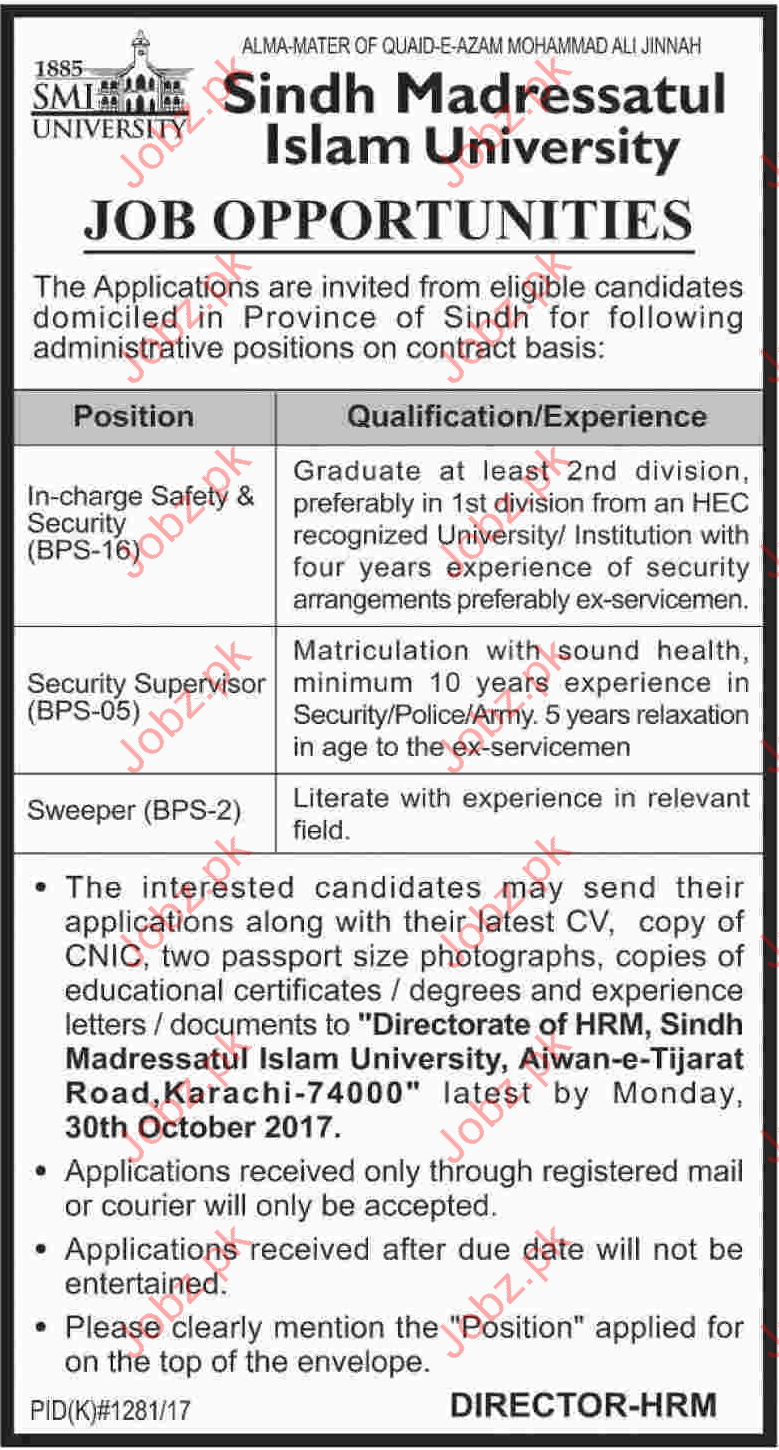 Latest Sindh Madressatul Islam University Security Posts Karachi 2025