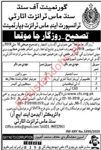 Sindh Mass Transit Authority Jobs 2019 Through CTS