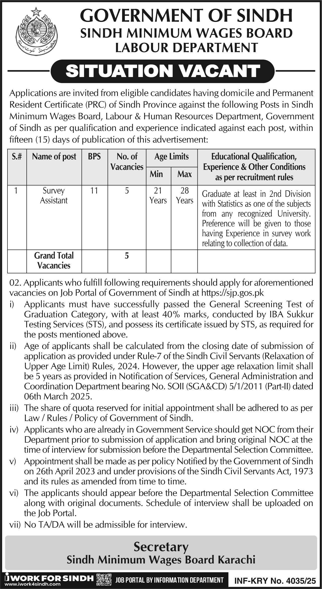 Vacancies in Sindh Minimum Wages Board Advertisement December 2025