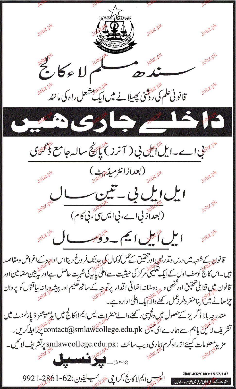 Sindh Muslim Law College Admission in LLB and LLM in Karachi Read newspaper ad for exact details.