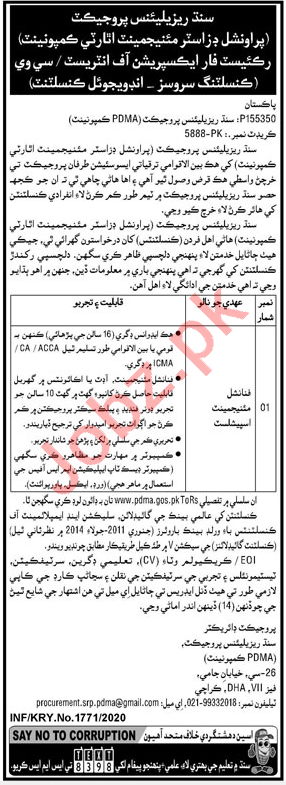 Latest Provincial Disaster Management Authority PDMA Finance Posts Karachi 2025