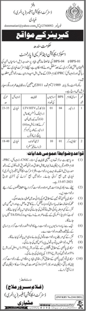 Latest School Education & Literacy Department Admin Clerical Posts Matiari 2025