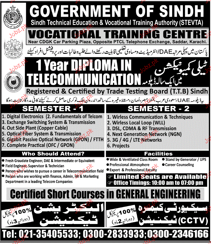 Sindh Technical Education & Vocational Training Authority Admission in Diploma in Hyderabad. Read newspaper ad for exact details.