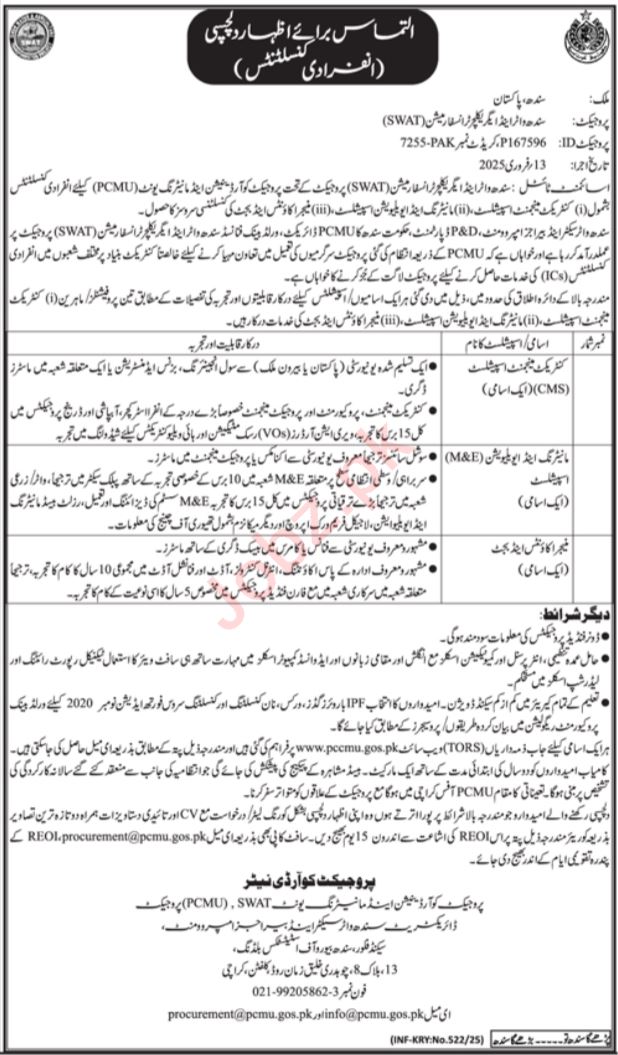 Vacancies in Sindh Water and Agriculture Transformation Project SWAT Advertisement February 2025