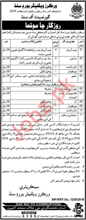 Latest Sindh Workers Welfare Board SWWB Labor Posts Karachi 2025