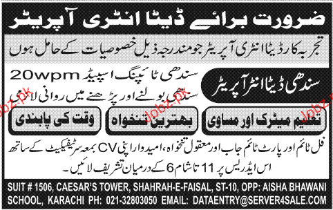 Sindhi Data Entry Operators are required in Karachi