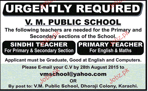 Sindhi Teachers And Primary Teachers Job Opportunity