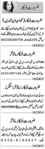 Media Sector invites applications for job positions advertised in daily Dunya dated 16 January 2024 for following vacancies in Lahore, lahore Punjab Pakistan.