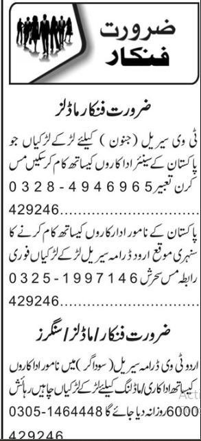 Latest Media Sector Acting Modeling Posts Lahore 2025